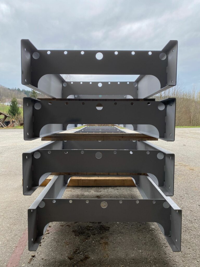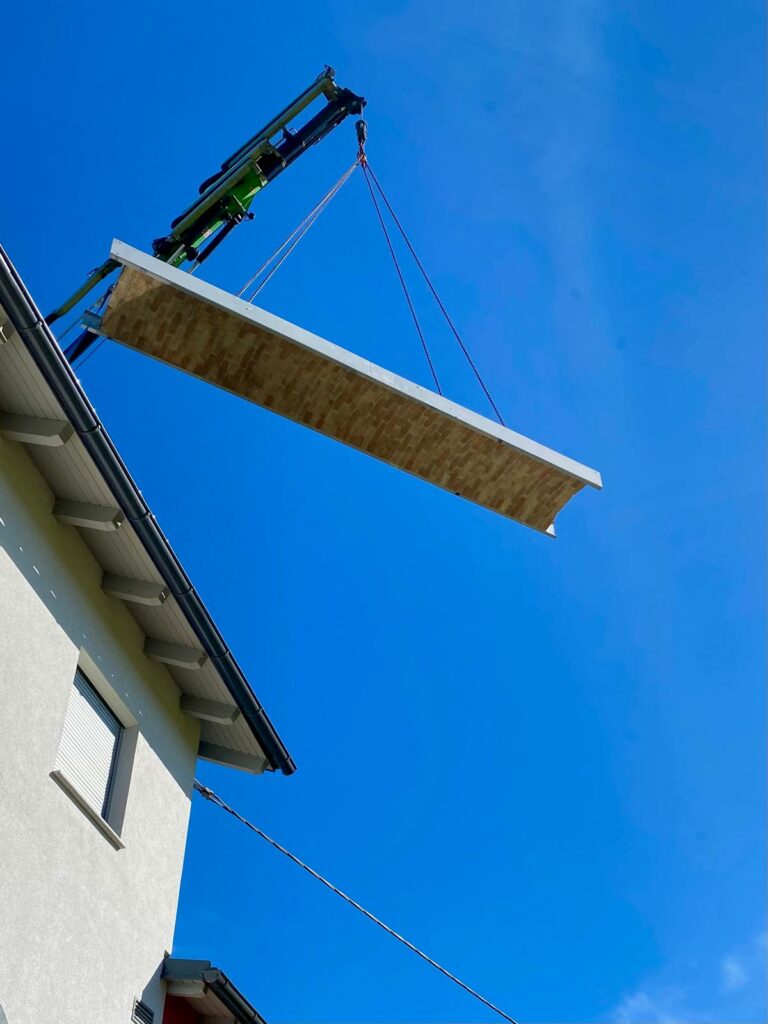 Fertigteilgewölbe – in die Stahltraversen wird im Werk ein Gewölbe eingemauert. Die Elemente werden mittels Kran auf der Baustelle versetzt. Raumseitig fertige Oberfläche und sofort begehbar.