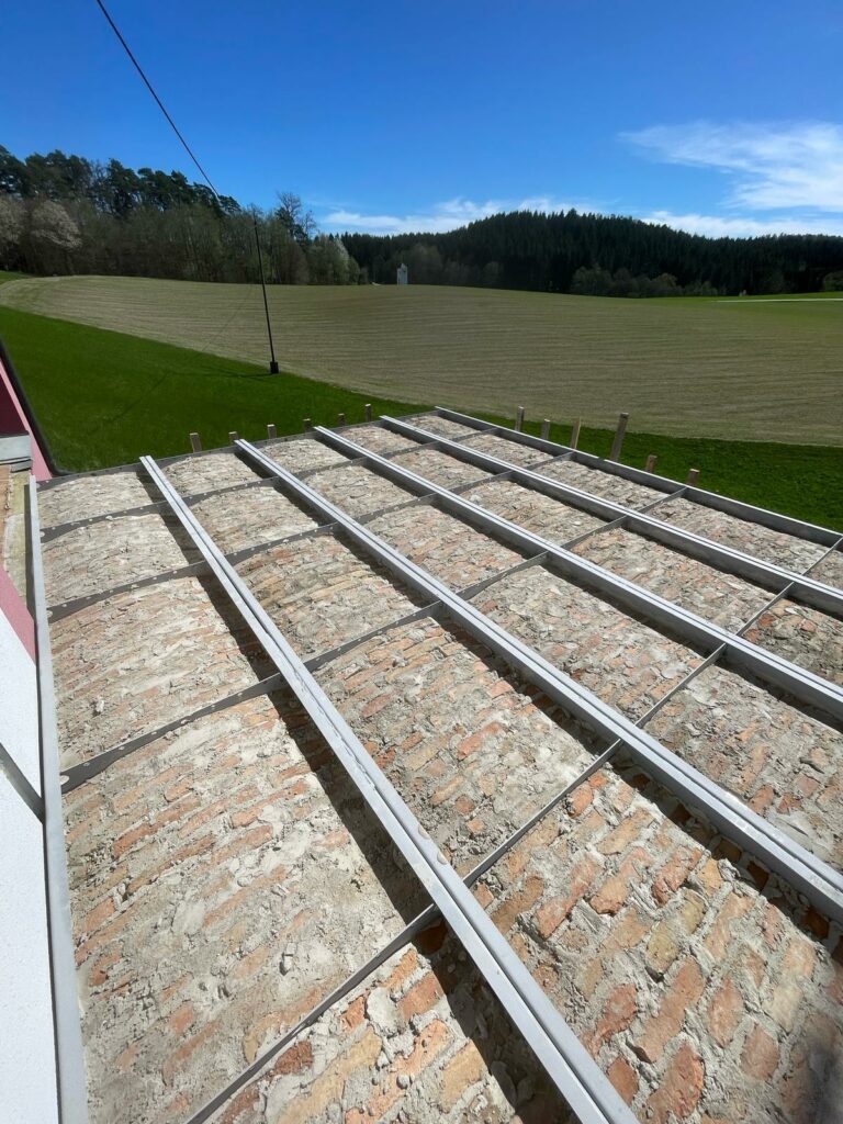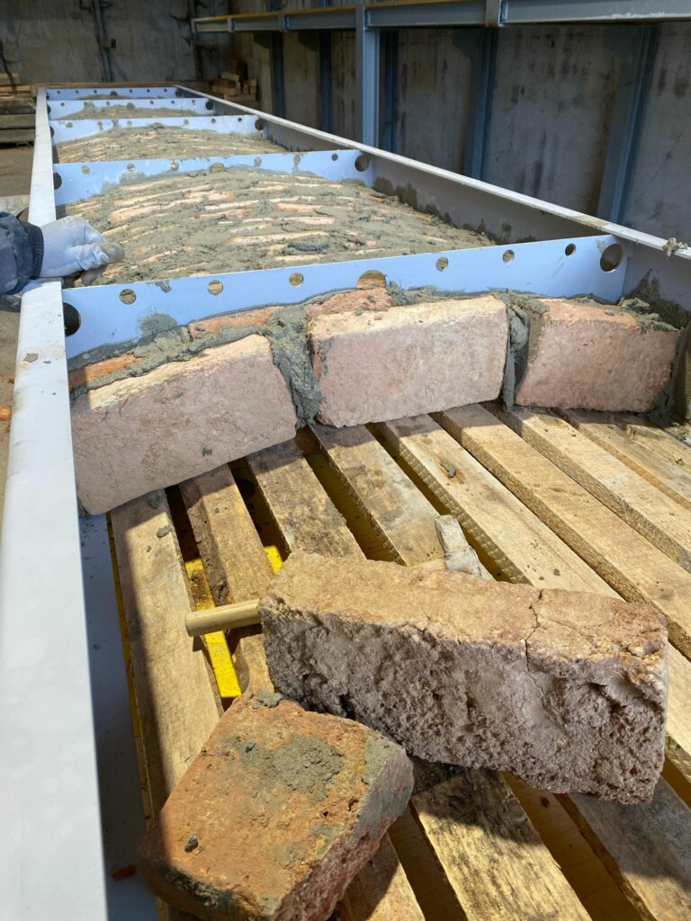 Fertigteilgewölbe – in die Stahltraversen wird im Werk ein Gewölbe eingemauert. Die Elemente werden mittels Kran auf der Baustelle versetzt. Raumseitig fertige Oberfläche und sofort begehbar.