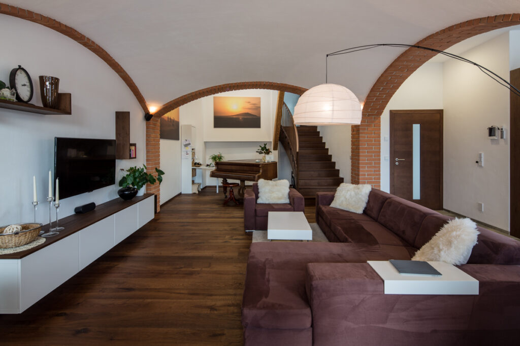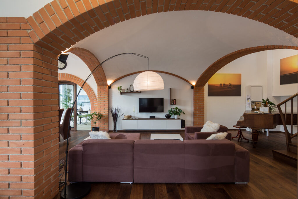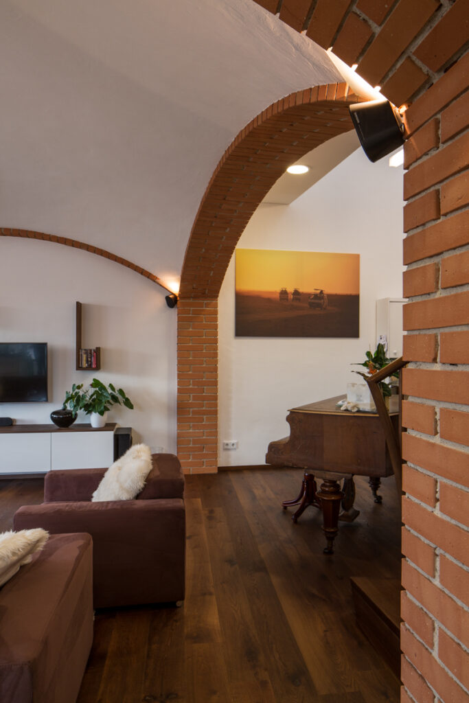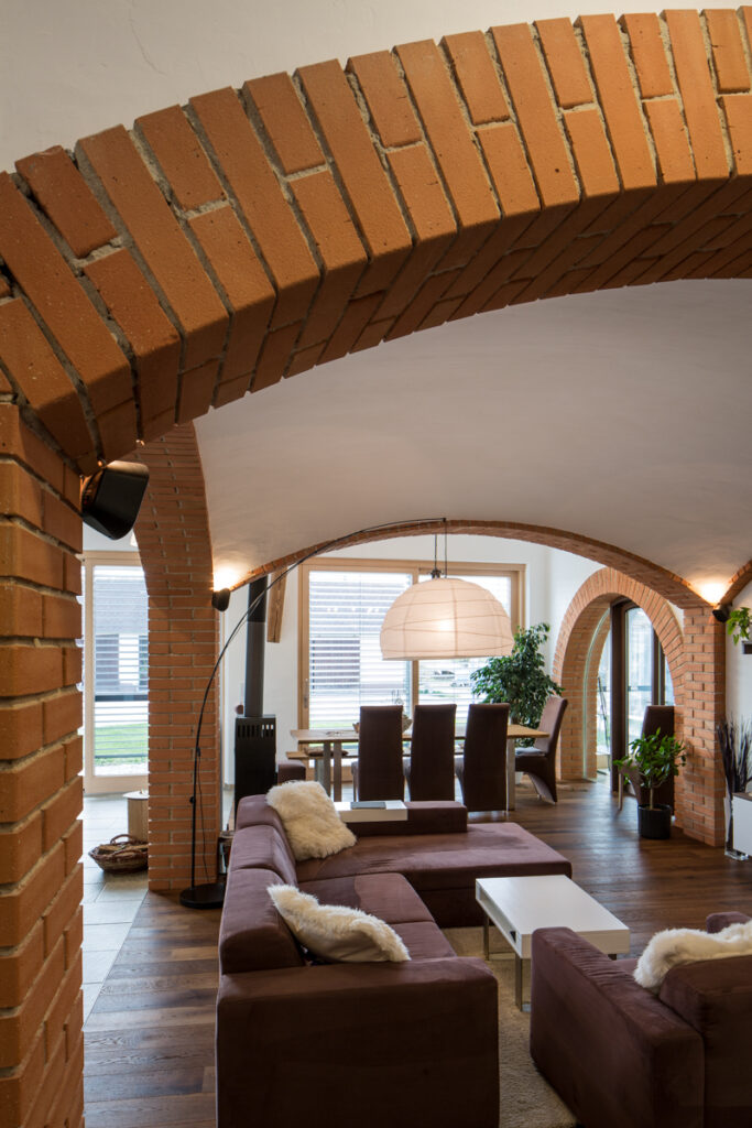 Böhmisches Platzlgewölbe mit Gurtbögen und Säulen aus neuen Ziegeln. Gewölbefläche wurde verputzt.