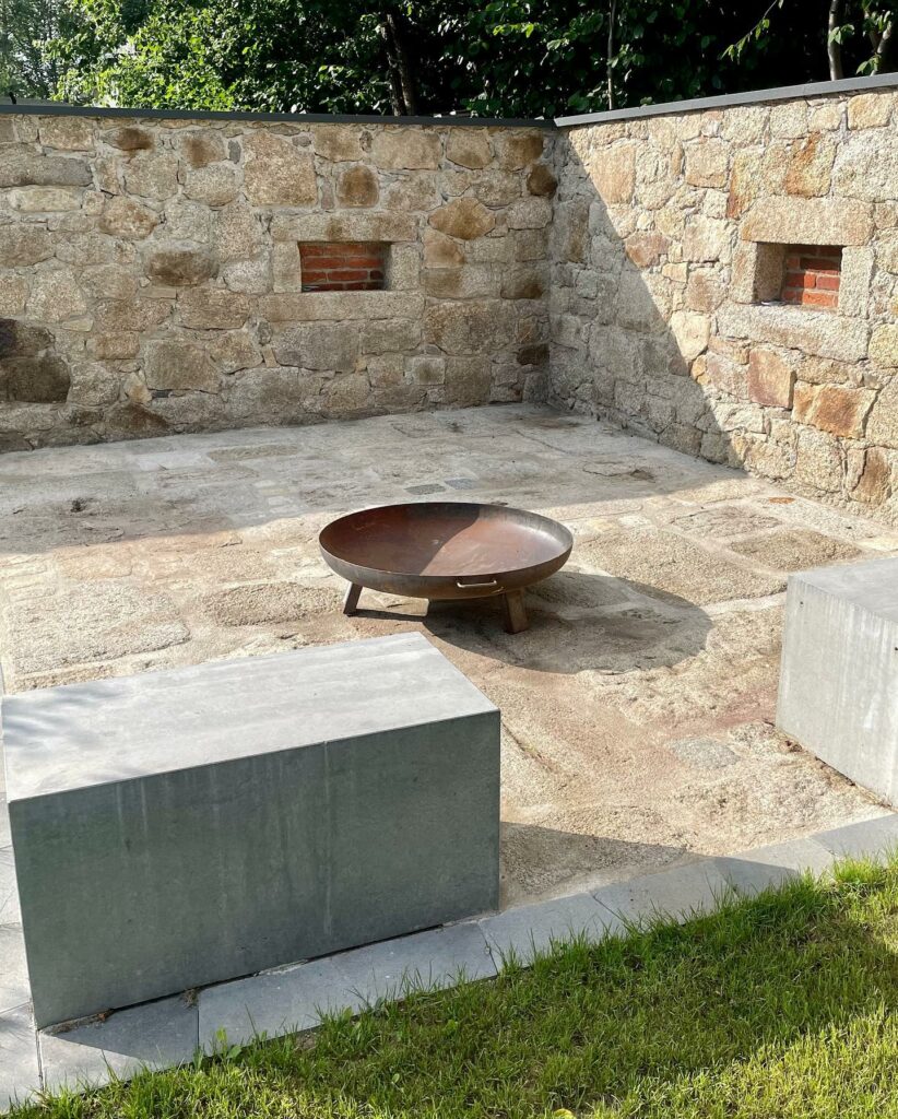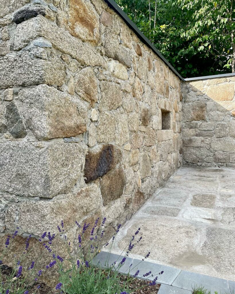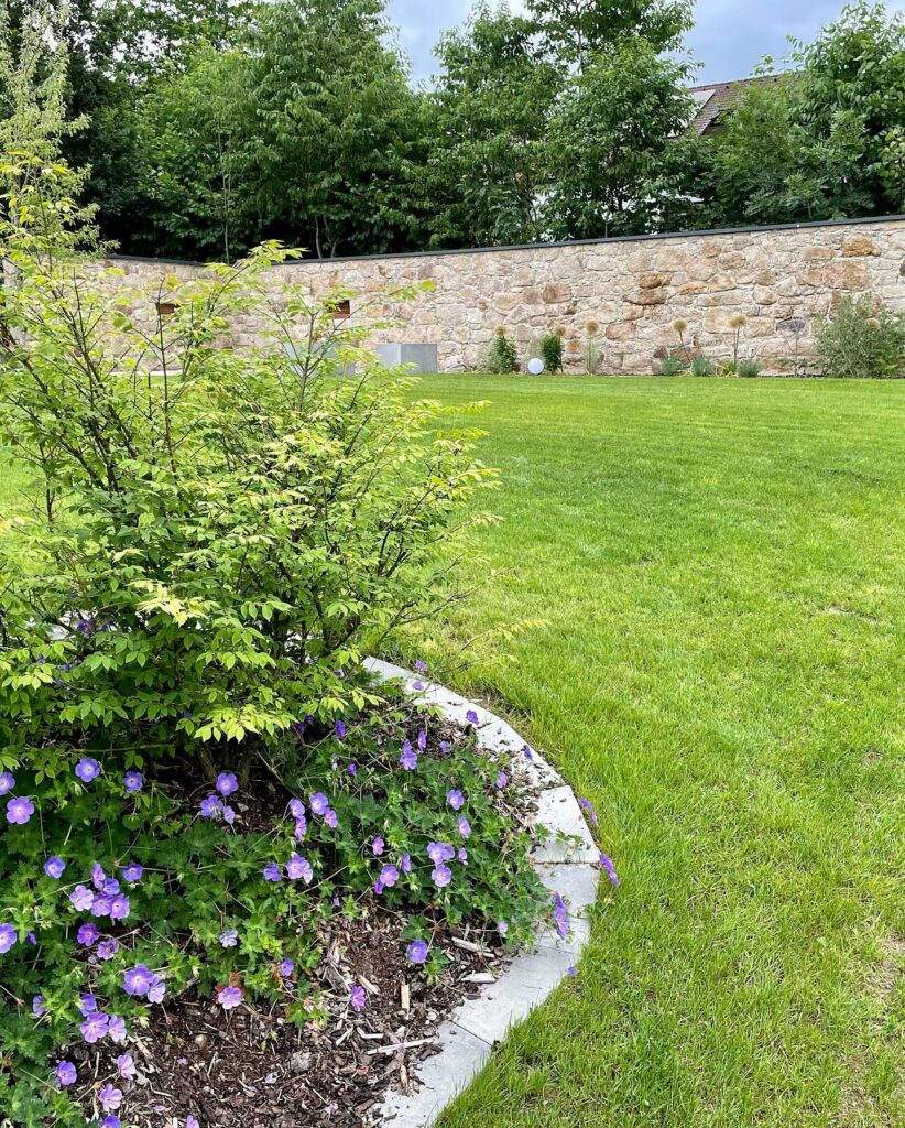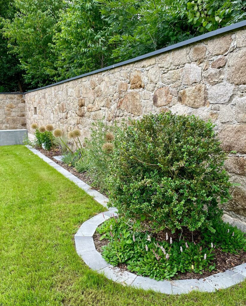 Natursteinmauer aus Mühlviertler Granit als Eyecatcher und Sichtschutz im Garten.